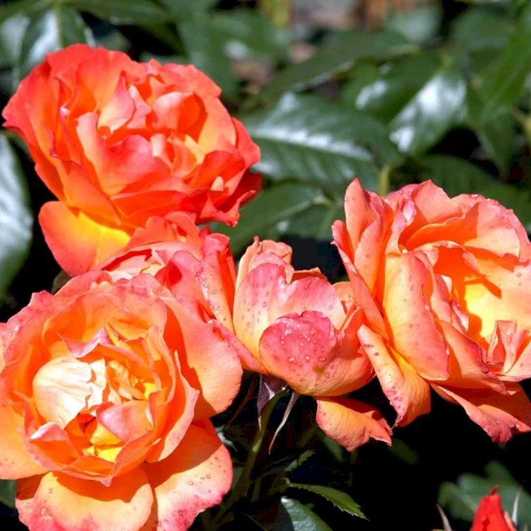 Klart orange, siden laksefarvet. Middelstor halvfyldt blomst med middelstærk og dejlig duft. 10-25 kronblade. 7-9 cm i diameter.
