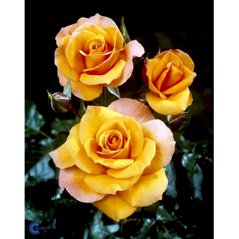 Flere nuancer af kobber, orange og abrikos. Stor, velformet og stærkt fyldt blomst med god duft. 20-25 kronblade.
