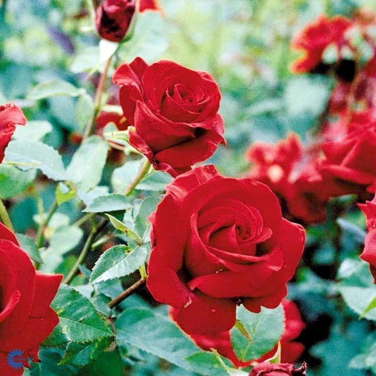 Storblomstrende rose. Plantes gruppevis i rosenbede med en planteafstand af 40 cm.