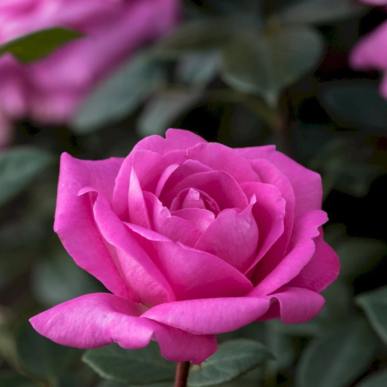 Storblomstrende rose. Plantes gruppevis i rosenbede med en planteafstand af 40 cm.