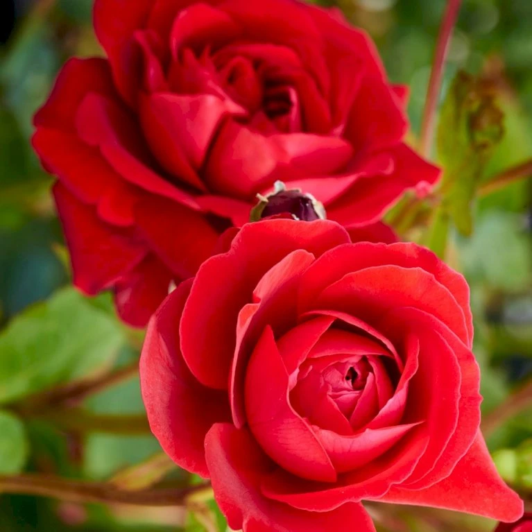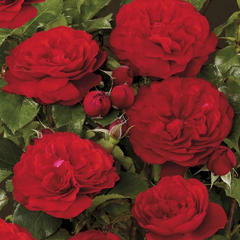 Mørkerød, middelstor til stor og stærkt fyldt blomst med let duft. Over 40 kronblade. 8-10 cm i diameter.