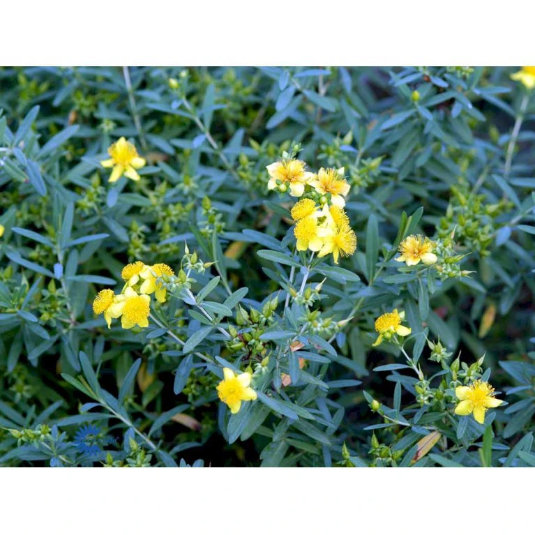 juni-august: Varmt gule og med lange støvdragere. Blomsterne er ret små 2-3 cm i diameter og sidder 5-7 stk sammen i små kvaster for enden af alle nye skud.