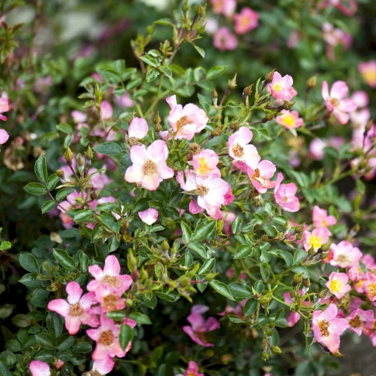 Pink til rosa, åben blomst med let duft. Søges af nytteinsekter.