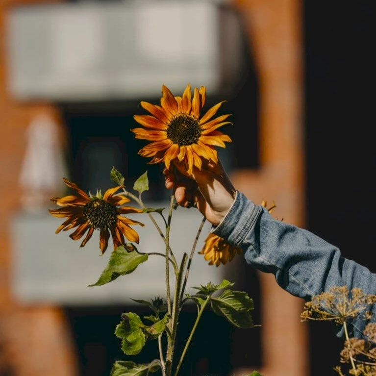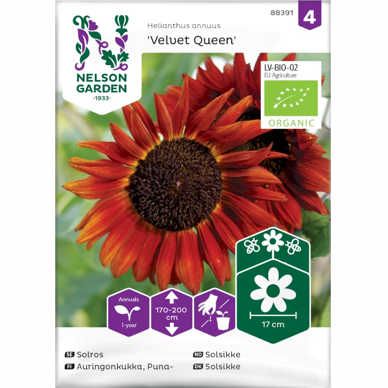 ‘Velvet Queen’ er en speciel, orangerød solsikkesort, som har en vidunderlig duft og tiltrækker både bier og sommerfugle.