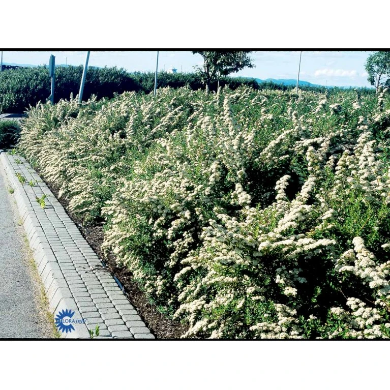 I juni måned utallige små, let duftende hvide blomster som sidder mange sammen på korte stilke i små buketter langs alle unge skud i deres fulde udstrækning.