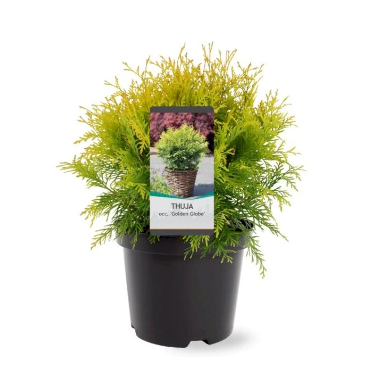 Thuja ‘Golden Globe’ Thuja Occidentalis ‘Golden Globe'(dværgform) Potte 3,0 Liter,- 25-30 Cm.